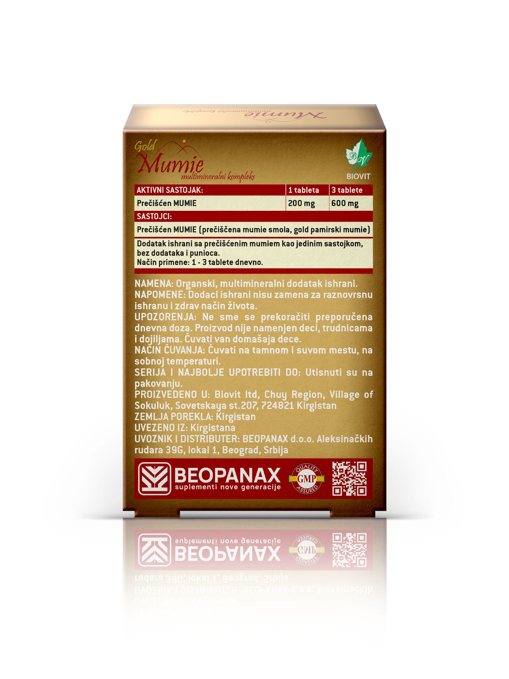 Gold pamirske Mumie tablete su čista prirodna mumie smola, bez dodataka i punioca, što je izvorni oblik ovog čudotvornog suplementa.